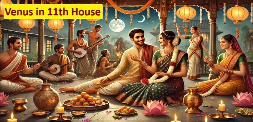 Venus in the 11th house in Vedic Astrology, exploring its impact on desires,
